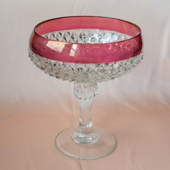 Indiana Glass Cranberry Ruby Red Diamond Point Cut Glass Compote