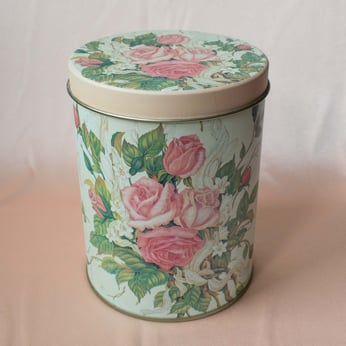 Himark Peaches n Creame Pink Cottagecore Cow Metal Tin Canister