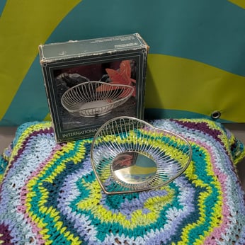Vntg International Silver Company Silver-plated Heart Shaped Wire Basket IOB