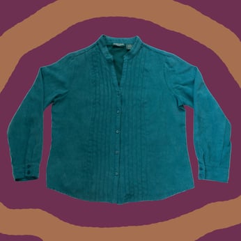 Lemon Grass Studio Dark Teal Soft Touch Pleated Deep V Neck Button Up Shirt