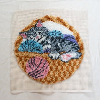 Kitten in Yarn Basket Round Shaggy Latch Hook Rug
