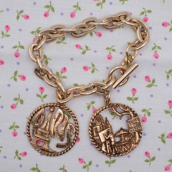 3pc Red & White Enameled Gold Tone Metal Bangle Bracelets
