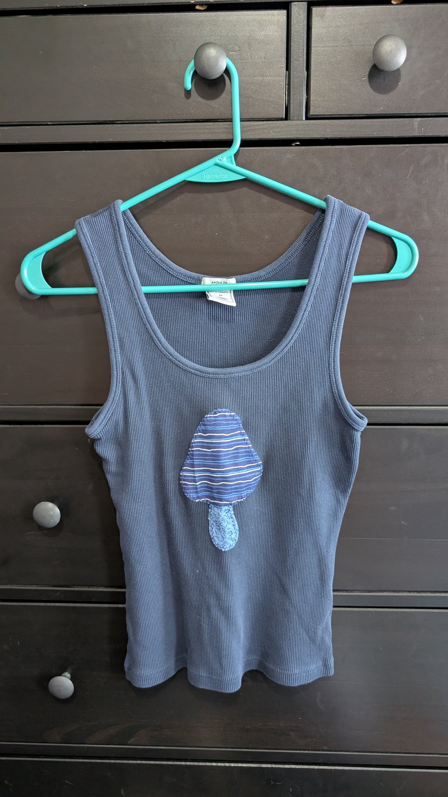 Navy Blue Upcycled Mushroom Ribbed Tank Top